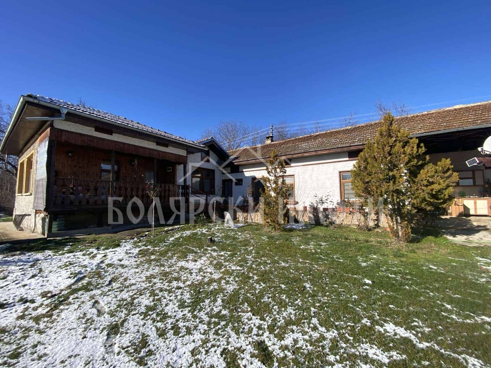 Болярски Имоти има удоволствието да Ви предложи за продажба къща с голям двор в село Хотница, което се намира само на 17 км. от Велико Търново. Селото е живописно и много добре уредено, с целогодишен достъп по нов асфалтов път, с добра телекомуникационна и интернет мрежа, с редовен автобусен транспорт до/от старата столица, хранителен магазин и много възможности за еко туризъм. Известно е с красивите ‘Хотнишки водопади’ и места за отдих, които привличат множество туристи. Имотът, който Ви предлагаме има следните предимства и характеристики: Намира се на удобно място в западната част на селото. Общата квадратура включва парцел с площ от 3581 кв.м., заедно с построените в него – едноетажна къща с площ от 100 кв.м.+ залепена до нея втора къща с площ от 50 кв.м. и навес с барбекю от 78 кв.м. + селскостопанска сграда -93 кв.м. Дворът е изключително просторен, терасиран на две обширни нива, частично ограден с каменен зид. Разполага с пълноводен кладенец. Сградите са едноетажни като под едната е изградена голяма каменна маза. Къщите са в състоянието, показано на снимките и имат следното разпределение: дневна с камина, обособен кухнески бокс и трапезария води към коридор, перално помещение, баня с тоалетна и спалня, от която директно се излиза на двора. От същия коридор странично се слиза и към висока и много стабилна каменна маза, подходяща за бъдеща механичка. Втори въшнен вход с веранда води към коридор, три спални и баня с тоалетна. Всички помещения са високи и слънчеви, поставен е гибскартон на таваните и стените, коита са шпакловани и боядисани, дограмата е висококачесвено ПВЦ Златен дъб, подовата настилка е ламинат/гранитогрес. Изградена е инсталация за парно отопление, както и допълнително са поставени два климатика. Къщата се предлага във вида, показан на снимките – изцяло обзаведена и оборудвана с всички необходими мебели и електроуреди. В навеса е направен външен кухненски бокс, с барбекю и място за почивка. Дворът е облагороден с много естествена декоративна зеленина, оранжерия и над 30 плодни дръвчета. А в селскостопанската сграда има достатъчно място за техника и инструменти. Местоположението на имота в самото село, близостта му до областния град, до който се стига по новоасфалтиран път, в съчетание с изключително просторен, широк и панорамен двор, както и построените в него сгради в много добро състояние, ви предоставят възможността за уединен живот сред природата и правят предложението ни много Атрактивно! Заповядайте на оглед! ID – 50725